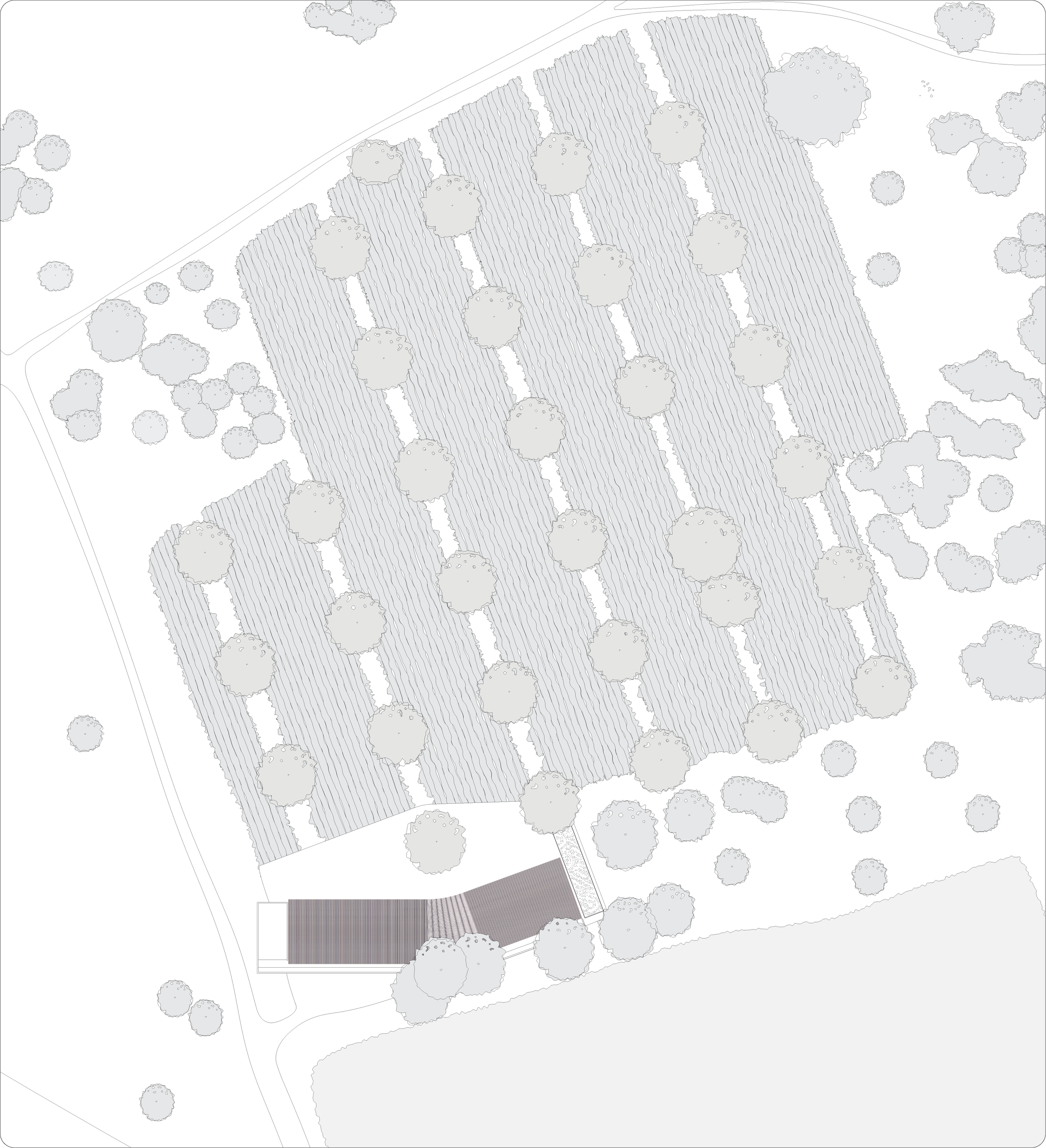 With the building placed at one corner of the large site, the remainder of the land can be farmed.